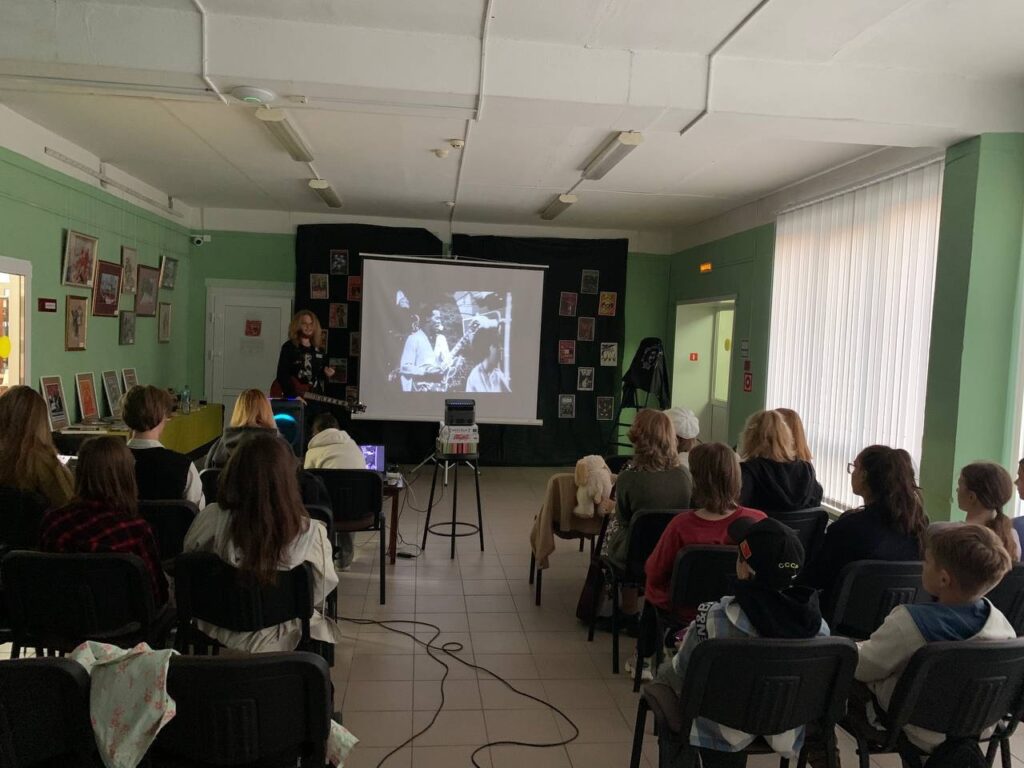 Ребятам рассказали об истории этого направления, его социальных предпосылках, об основных темах и музыкальных инструментах.