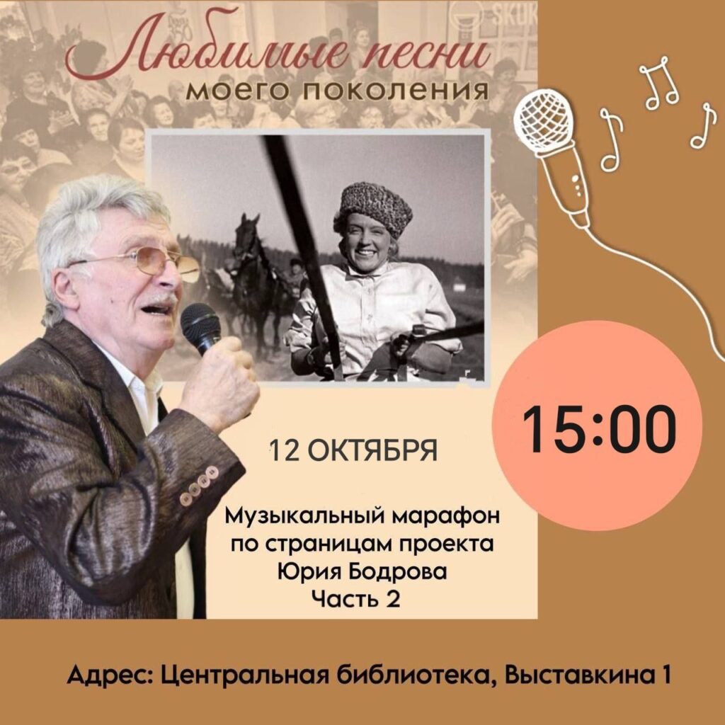 Приглашаем вас на долгожданное мероприятие – Музыкальный марафон по страницам проекта Юрия Бодрова «Любимые песни моего поколения», часть 2. Это будет не просто концерт, это настоящее путешествие во времени, наполненное теплом, ностальгией и знакомыми песнями.
