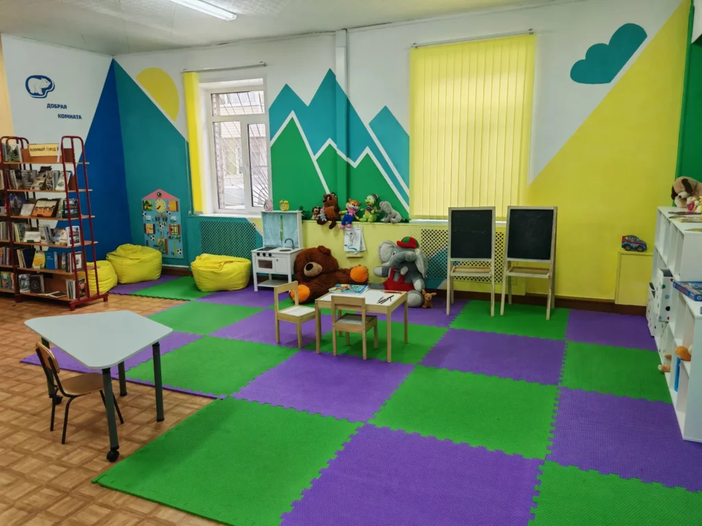 Для удобства читателей в библиотеке предусмотрены зарядки для гаджетов, оборудована «Детская комната» с игровой зоной. На улице предусмотрена велопарковка. Библиотека доступна для лиц с ограниченными возможностями.
